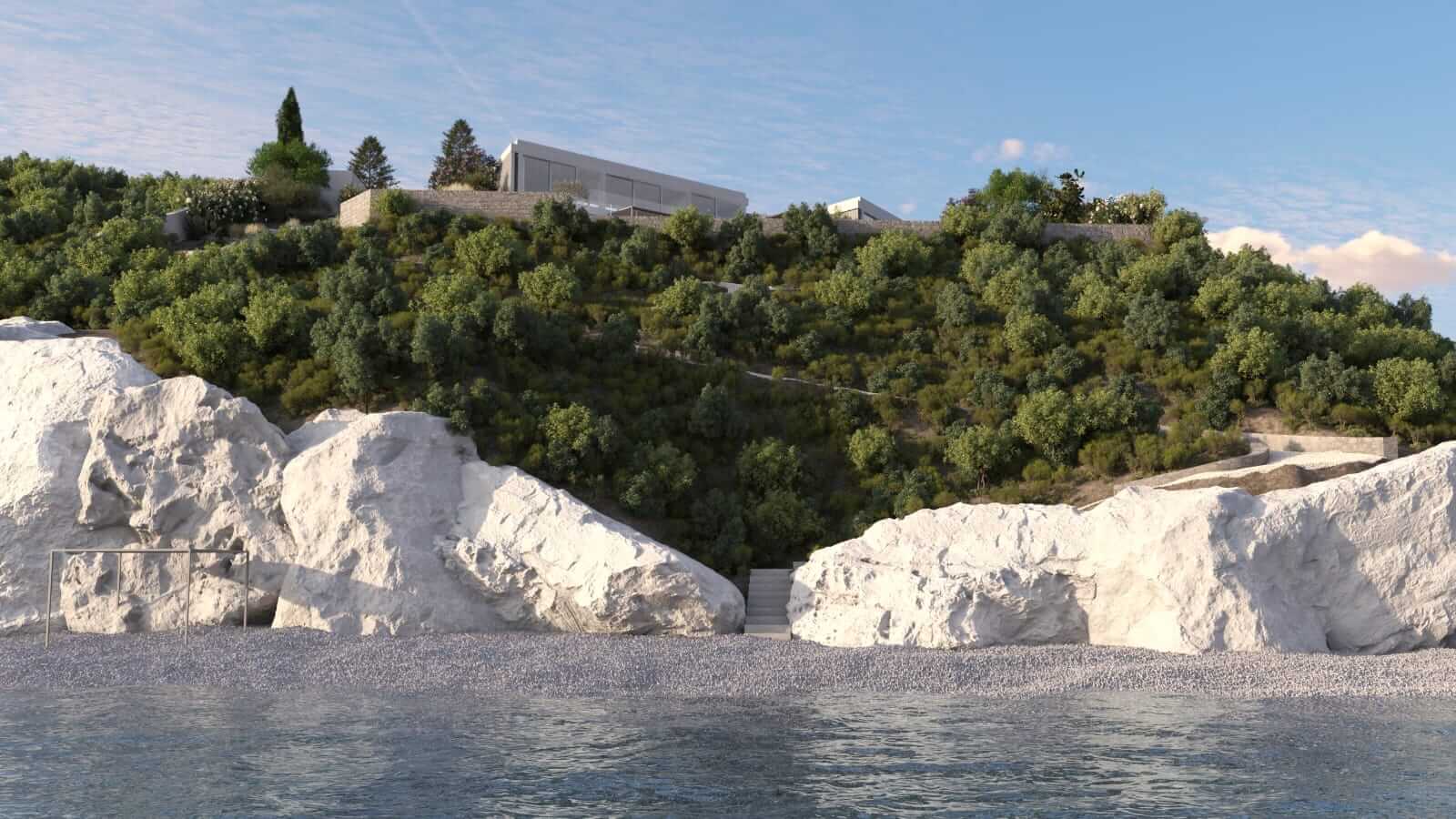 Among the few plots facing the sea undisturbed, and with access to 2 sandy beaches.