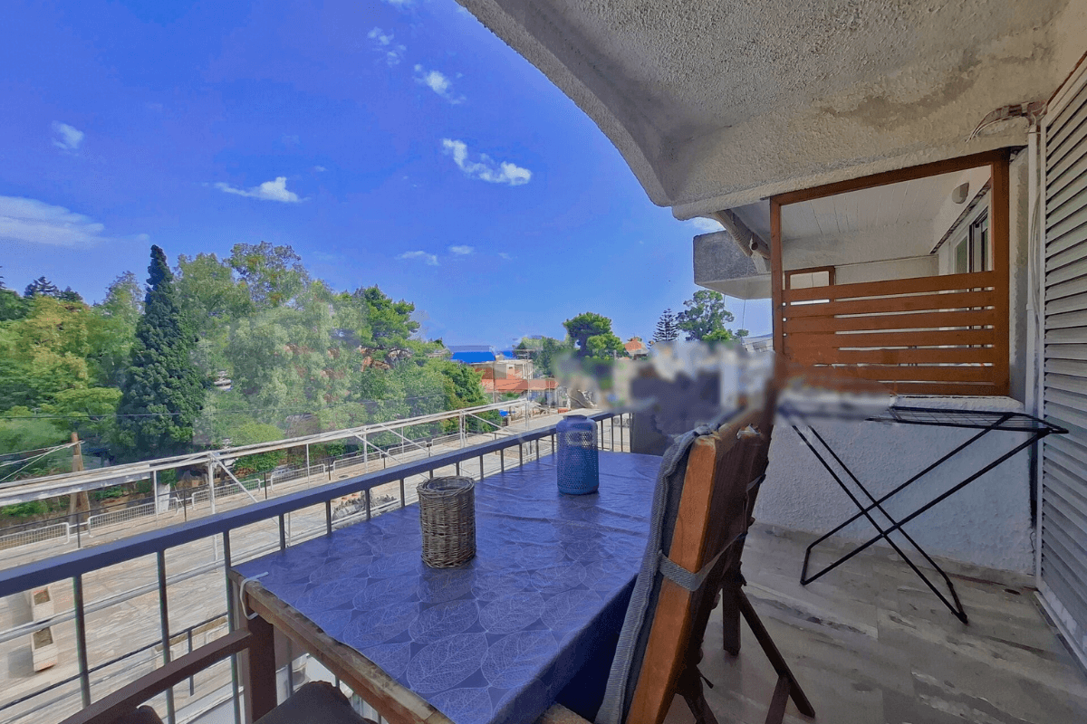 The apartment is on the first and top floor of a small and quiet building, and features a balcony with an open view of the sea and mountains, perfect for moments of relaxation and enjoyment.