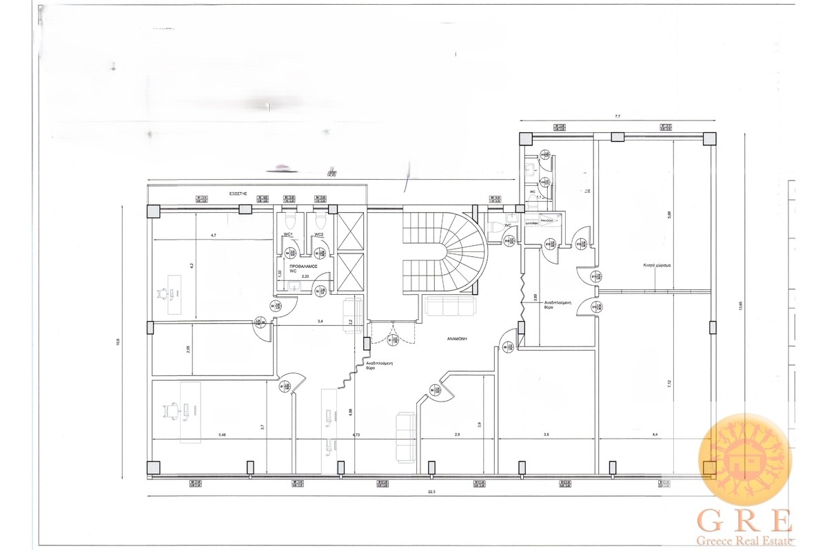Entire first floor in a very central building, just a 2 minute walk from the Piraeus City Theater, on a sought-after street.